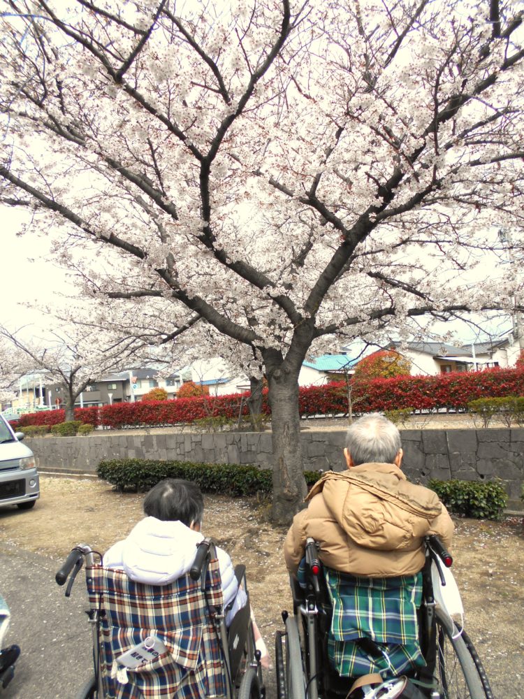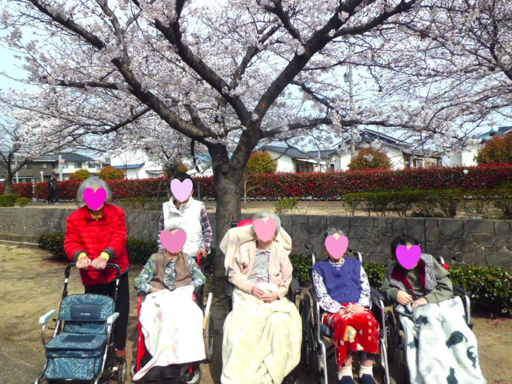 美しい桜を見て満開の笑顔になられる入居者様たちでした🤩